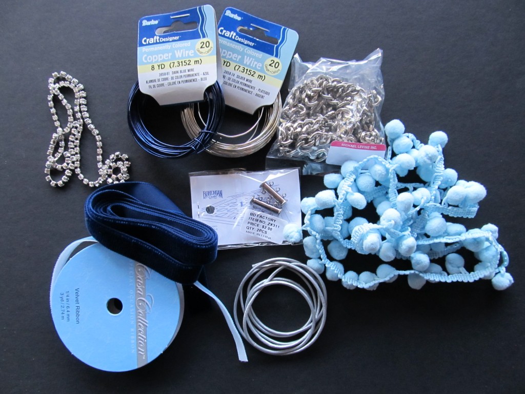 - 1 yd. of thicker velvet ribbon to hold the necklace-dark blue