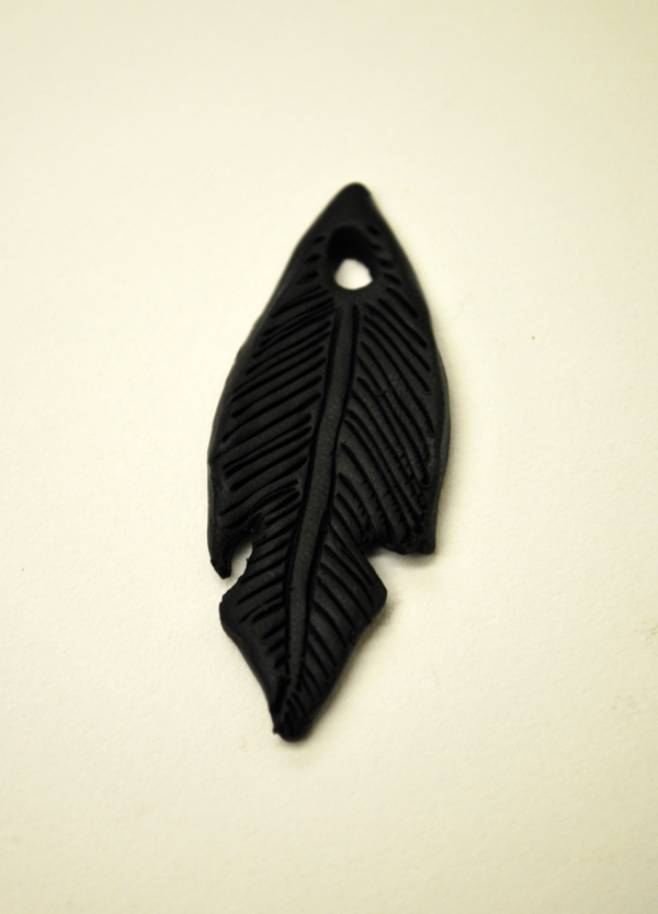 Go back and make lines on each side going all the way down. When you get the feathers looking the way you want, bake them according to the Fimo directions.