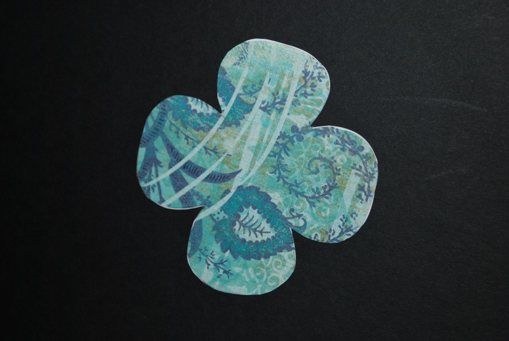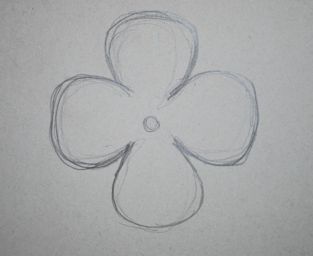 Start by creating your flower stencil. With a pencil, I lightly drew my outline of the flower until I was satisfied with the overall shape. This was roughly 2 1/2″ to 3″ in length. Cut out the stencil.