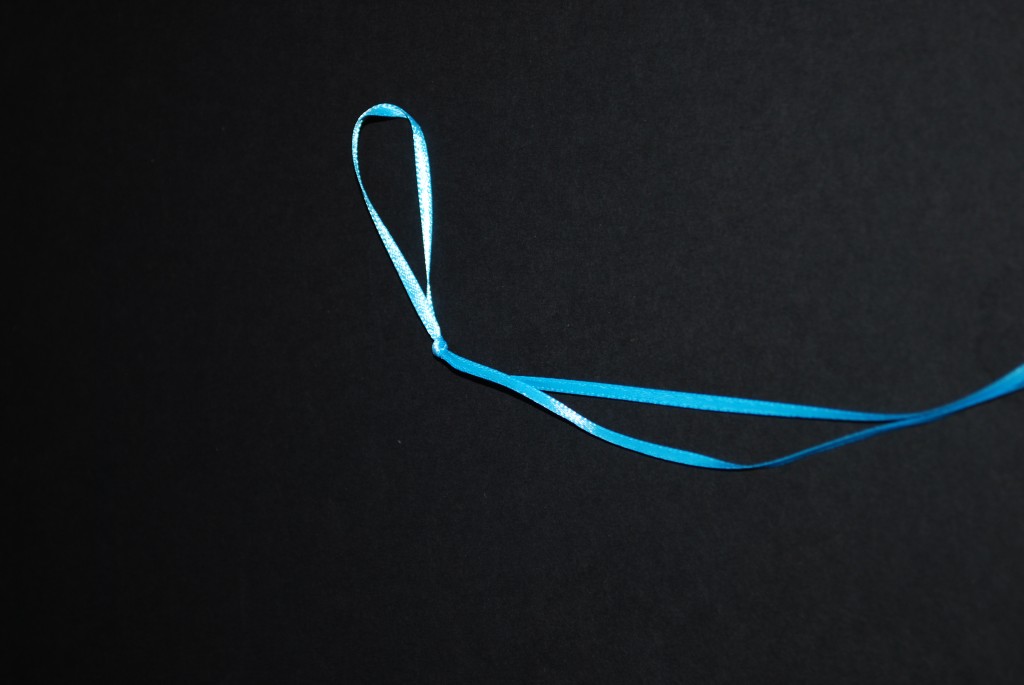 Double up the ribbon and cut a little over 2 yards of ribbon. Make a loop at the top and double knot it.
