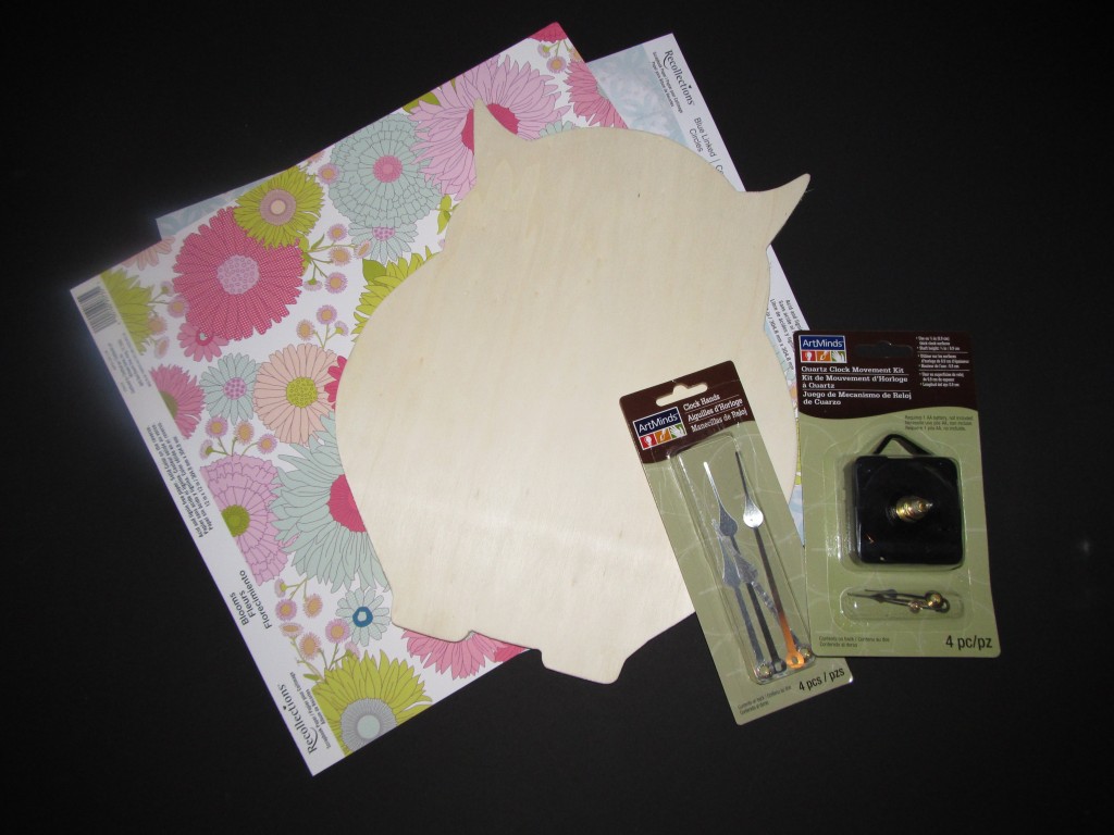 The second challenge of One Crafty Contest was mod podge. There were several ideas that went through my head. I have used mod podge before for collaging various things, but I wanted this project to be extra special since I figured I’d be up against contestants that were going to do pieces of furniture. I knew I wanted to do something that was going to be different, but cute and functional. I came up with the floral owl clock idea.