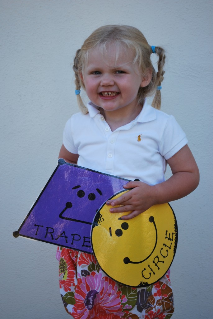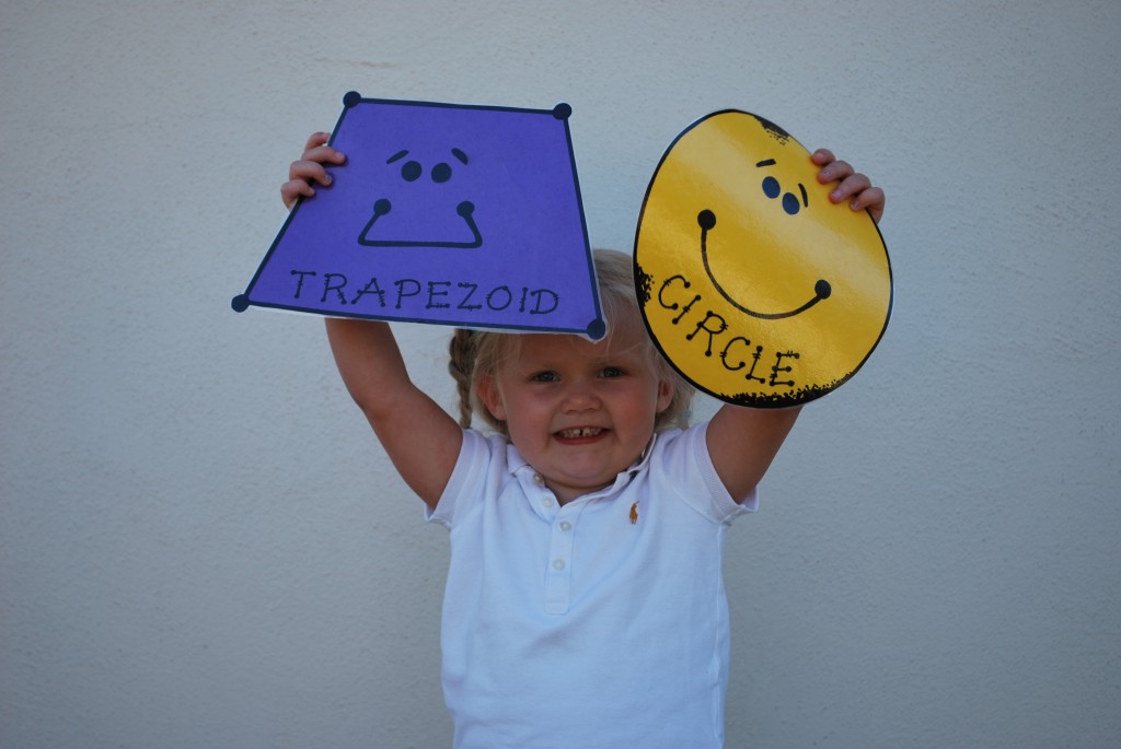 I asked Lily to pick out her two favorite shapes. She said Mr. Trapezoid and Mr. Circle. Yes, she did say trapezoid.